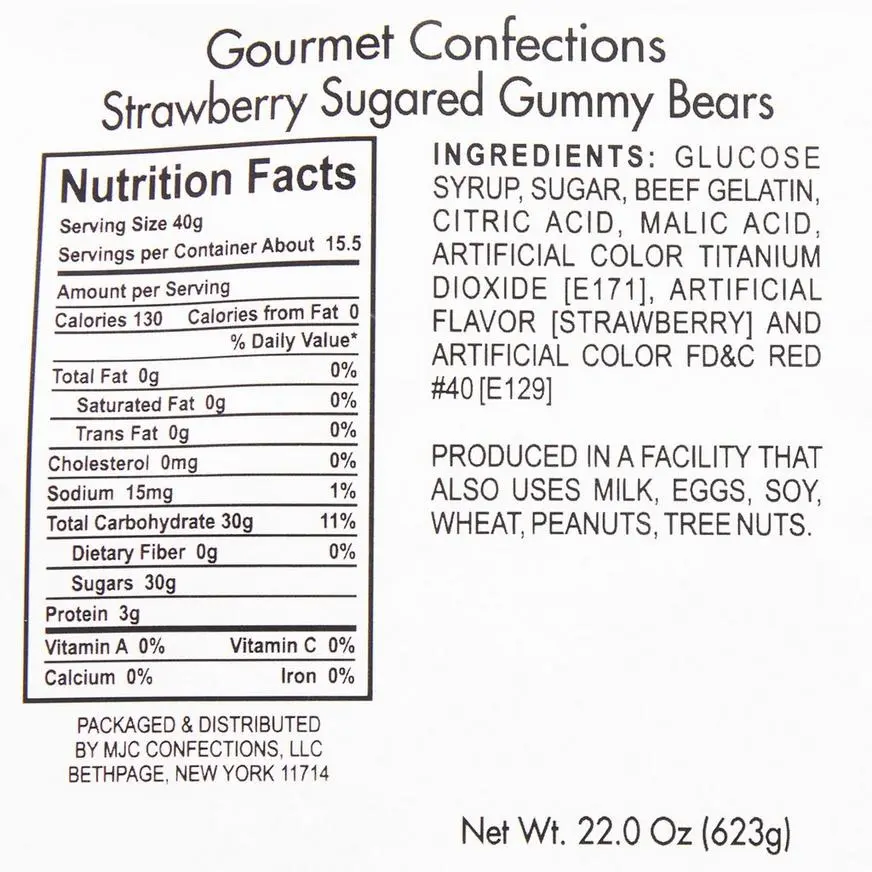 These gummy bears are bursting with strawberry flavor and coated in sugar crystals. Enjoy some gummy bears for snack time, movie night, game day, and road trips. Add a few pink gummy candies to candy buffets and treat bags for guests to enjoy. You can even use gummy bears to fill Easter eggs or top off desserts.