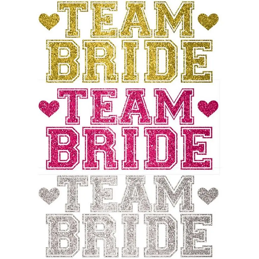 Shine bright at your bachelorette party with our Team Bride Body Jewelry! This glitter body art says “TEAM BRIDE” with heart details in pink, silver, and gold. Make sure everyone in your bachelorette party is wearing one for a sparkling good time!