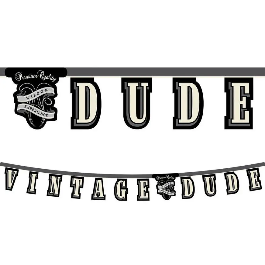 The man of the hour is aged to perfection, so decorate for the party with a Vintage Dude Letter Banner! This banner has cardstock letter cutouts that spell out “Vintage Dude” in gray, black and ivory letters. Between the two words is a cutout that reads “Premium Quality,” “Wisdom,” and “Experience” — three things your man definitely has! Hang this single-sided banner by the attached yellow strings to man up your adult birthday or retirement party space.