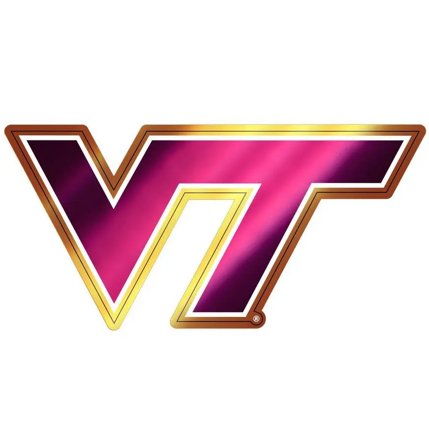 Go! Play! Win! Virginia Tech Hokies Decal sticks to almost any surface indoors or outdoors, including metal, plastic, and glass. Shaped like the team logo, this metallic sticker shows off your school pride! This Virginia Tech Hokies Decal also makes a great gift for a fan.